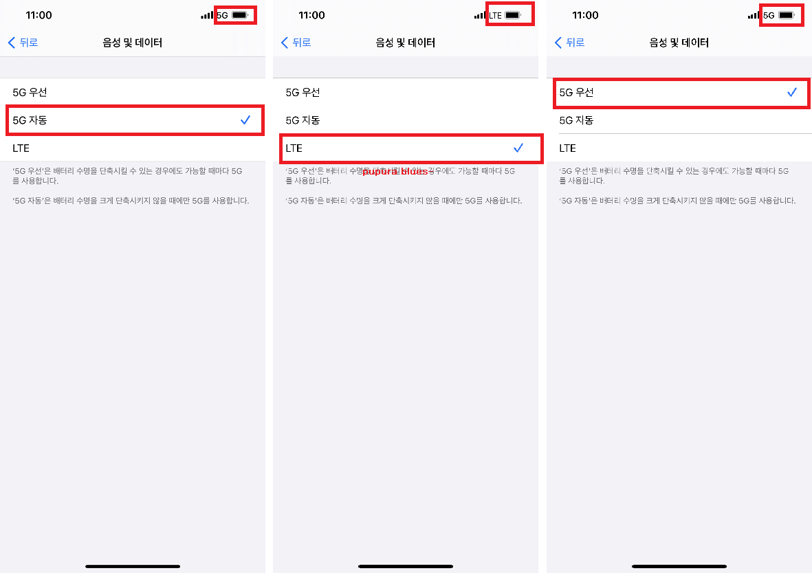 설정 - 셀룰러 - 셀룰러 데이터 옵션 - 음성 및 데이터 로 들어가셔서 본인의