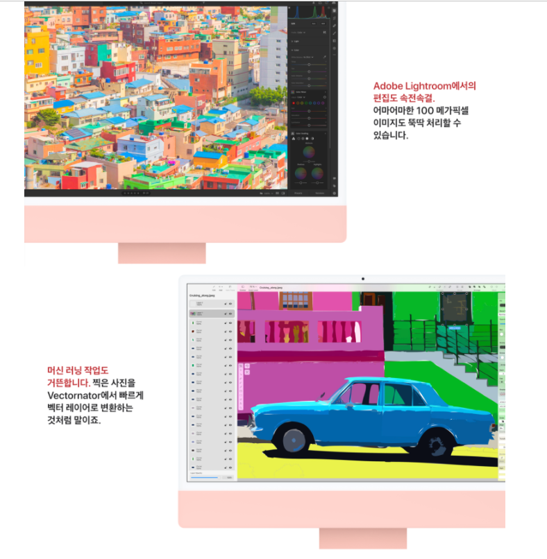 그래서 아이맥 M1 24인치를 알아보게 됐는데 , 가격도 비슷하고(7코어 기준) 칩셋도 비슷하고 ..